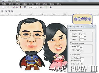 GCC星云捷豹Jaguar四代和云豹Puma三代刻字機設計有循邊切割精準定位系統(AASII),能偵測預先打印在圖檔上的定位標記點,快速、方便、精準的切割各種復雜外形的商標圖案,省卻人工裁刀帶來的不便。該工藝被廣泛應用于廣告標識、交通標識、車身貼畫、工藝品制作及服裝燙貼行業。